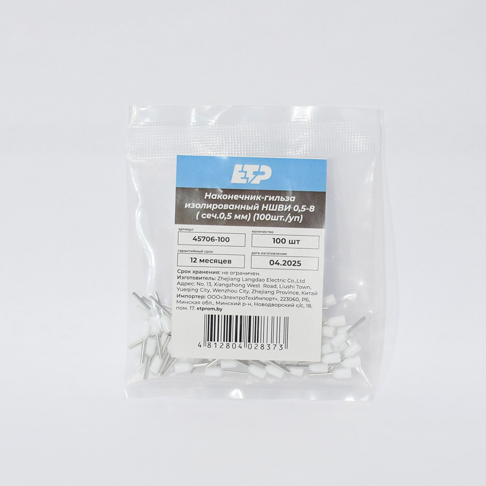 Наконечник штыревой втулочный изолированный НШвИ Е 0508 ETP предназначен для оконцевания методом