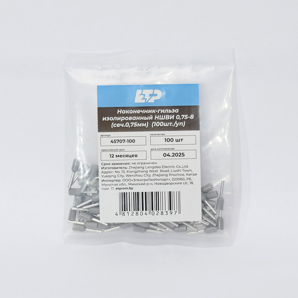 Наконечник штыревой втулочный изолированный НШвИ Е 7508 ETP предназначен для оконцевания методом