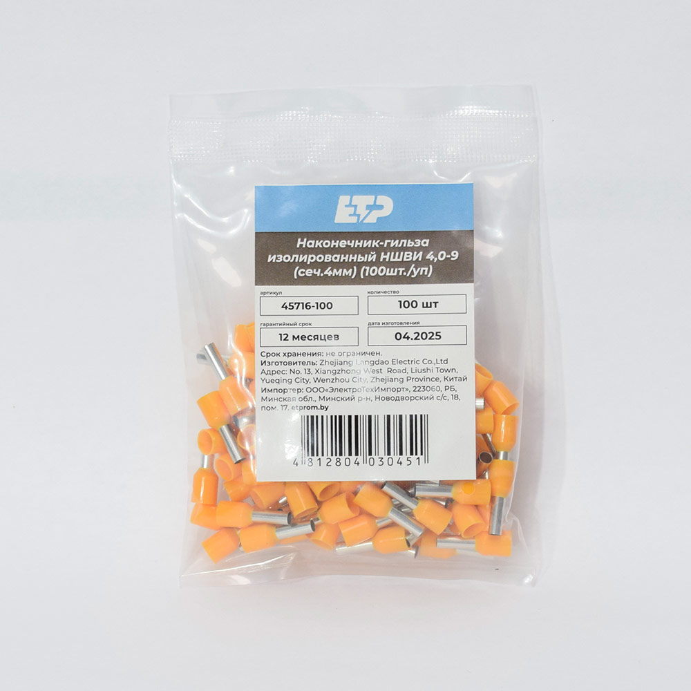 Наконечник штыревой втулочный изолированный НШвИ Е 4009 ETP предназначен для оконцевания методом