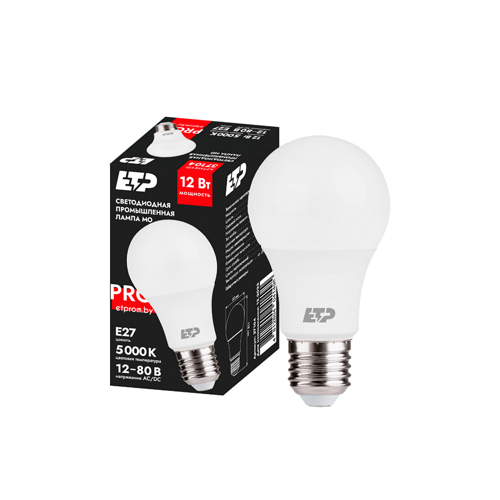 Светодиодные лампы местного освещения (МО) A60 12W MO 12-80V 5000K E27 ETP – светотехническое оборудование, в котором в качестве источника света выступают светодиоды (LED).