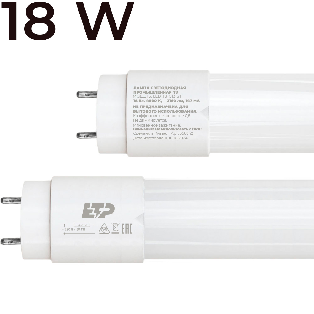 Светодиодная лампа T8 18W 4000K модели LED-T8-G13-ST ETP – современный источник света, успевший заслужить доверие покупателей, став улучшенным аналогом люминесцентной лампы. Представляет собой трубку 614мм из матового стекла , внутри которой расположены драйвер и светодиодная лента. Лампа T8 от ETP обеспечивает европейское качество, сочетая в себе доступную цену и отличные характеристики.