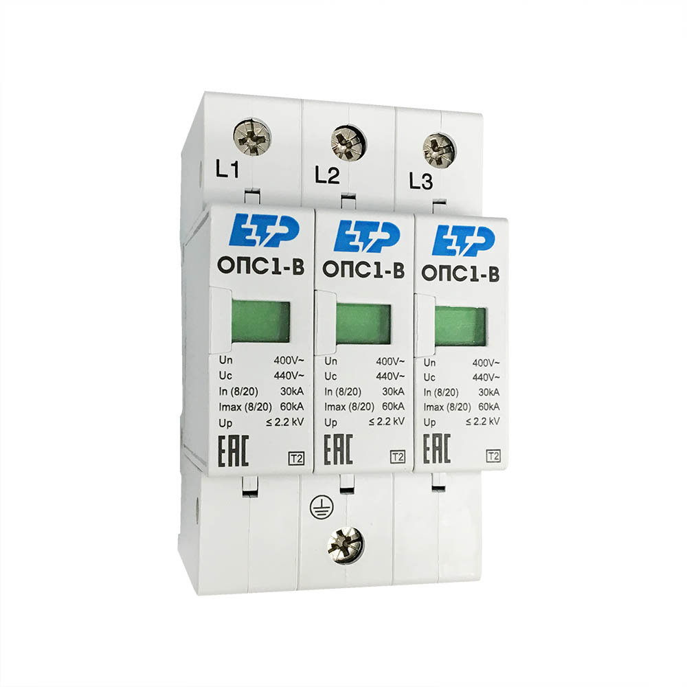 Ограничитель импульсных перенапряжений ОПС1 ETP является устройством защиты от импульсных перенапряжений (УЗИП), ограничения переходных перенапряжений и защиты от грозовых импульсов тока в сетях переменного тока 230/400В частотой 50 Гц.
