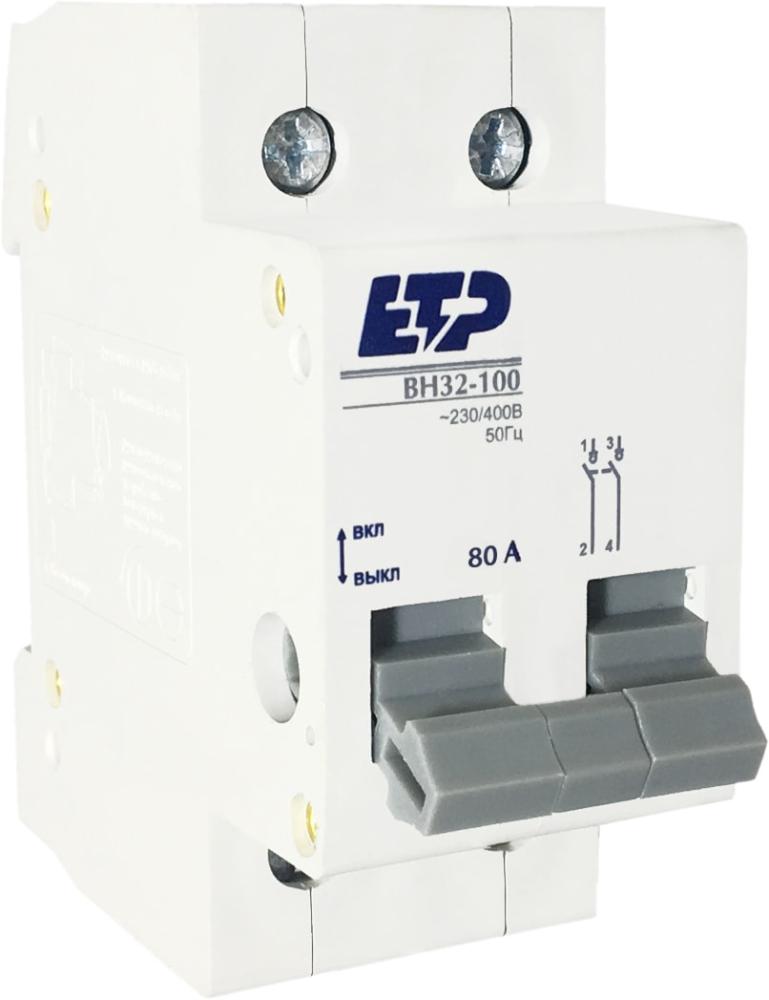 Выключатели нагрузки ВН 32-100 ETP предназначены для оперативного управления участками электрических цепей, т.е. управляют процессом включения-выключения номинальных токов в отходящей цепи. Выключатели нагрузки ВН 32-100 ETP выполнены в корпусе из не поддерживающей горение пластмассы. Насечки на контактных зажимах предотвращают перегрев и оплавление проводов за счет более плотного и большего по площади контакта. На лицевой панели реализован механический индикатор положения контактов (включено/отключено). Эргономичная рукоятка управления исключает соскальзывание пальцев. Геометрия боковых поверхностей изделия разработана для улучшения теплового режима.