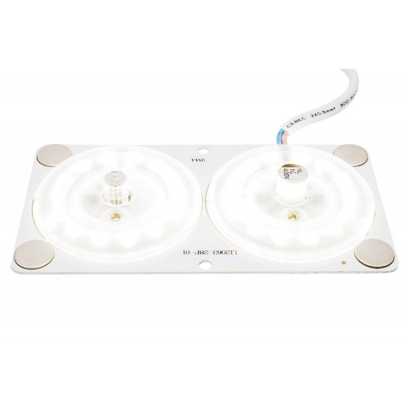 Светодиодная плата с линзами 2-16 предназначена для замены стандартных ламп, а также современных светодиодных источников свечения, которые уже повсеместно используются в настенно-потолочных светильниках. Преимуществами изделия является его конструкция, которая повышает степень освещенности, а также большая площадь охлаждения, которая увеличивает срок службы. Световой поток равен 1920 Лм, что эквивалентно 190 Вт. Светодиодная плата имеет прямоугольную форму с размером 120х63 мм. Благодаря отсутствию мерцания светового потока отлично подходит для использования в жилых помещенияххх, а также административных, медицинских и производственных учреждениях.