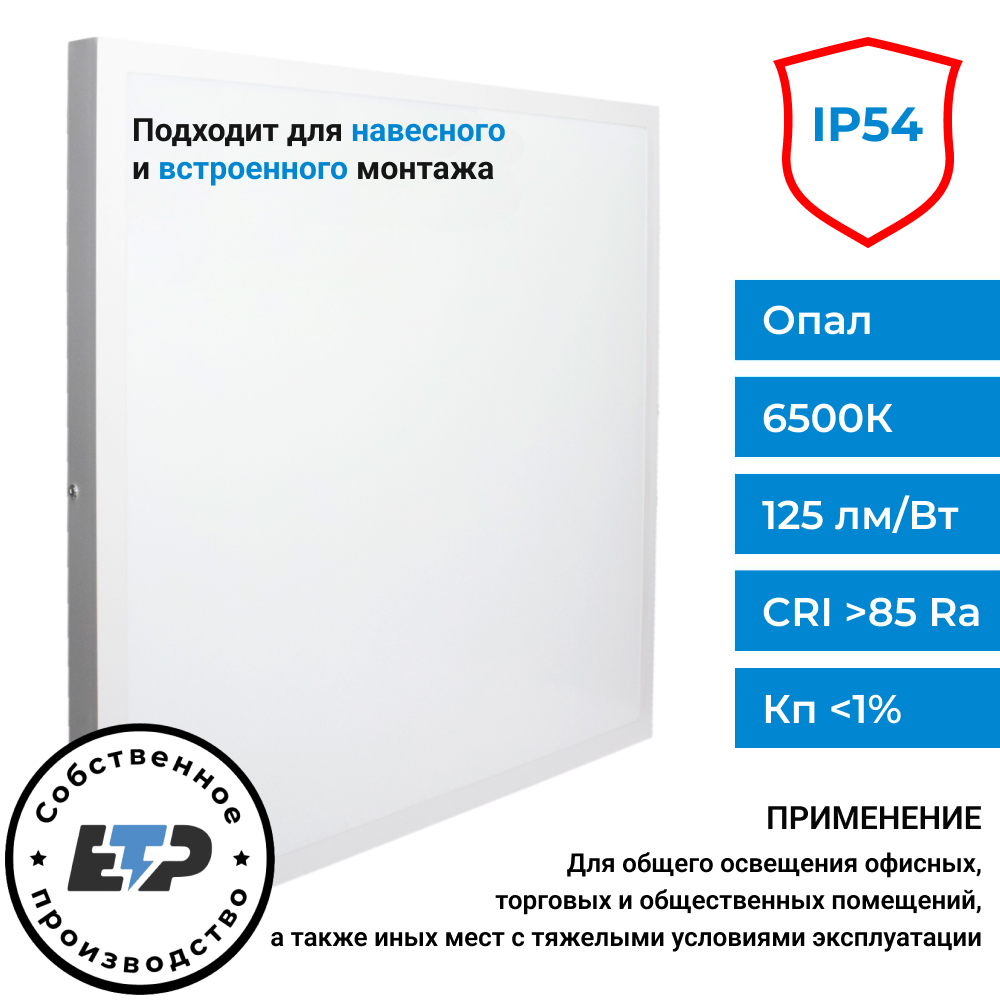 Светодиодная панель ДВО 01-1х40х003 IP54 УХЛ4 ETP с цветовой температурой 6500К применяется для общего освещения в торговых залах, в офисных и общественных помещениях, в административных и производственных зданиях. Благодаря качественному драйверу с надёжными электрокомпонентами, наши светодиодные панели ДВО 01 ETP отлично подойдут для использований в кабинетах со сложными компьютеризированными устройствами: в медицинских центрах, различных лабораториях, исследовательских центрах, серверных комнатах и т.п..