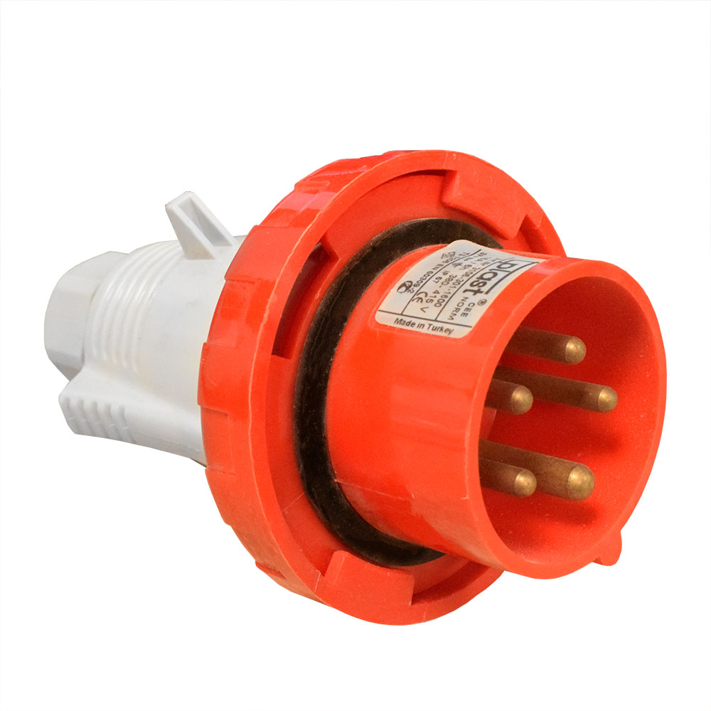 Трехфазная силовая розетка характеризуется наличием трех контактов и одним контактом для ноля. Максимальный предел тока равен 380 В.
