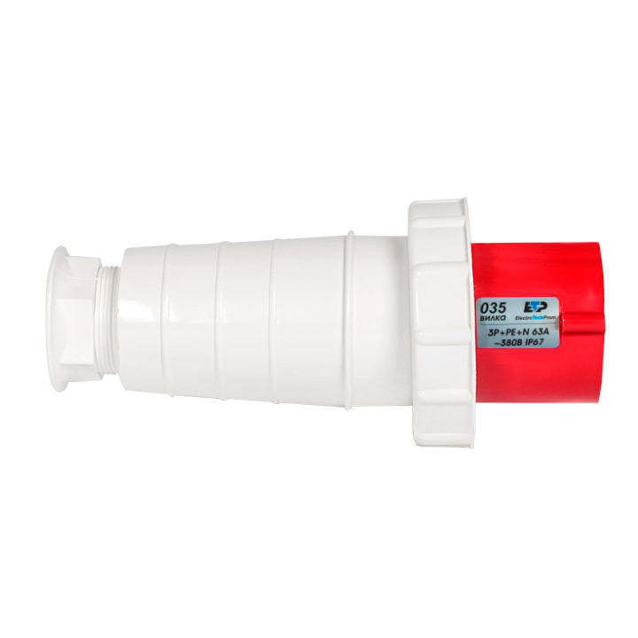 Вилка силовая №035 3Р+РЕ+N 63А 380В IP67 ETP – мобильный силовой разъем, предназначенный для подключения мощных электрических приборов и оборудования, которые потребляют мощность до 24 кВт.