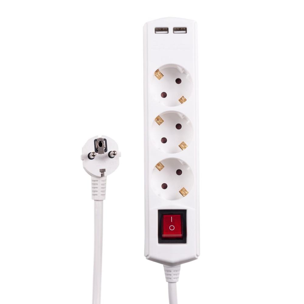 Электрический удлинитель с USB 3 гнезда 5м, 16А/3,6кW с з/к, ПВС 3х1,5 ETP с пятиметровым проводом ПВС из 100% меди позволяет подключать к нему мощные бытовые приборы общей нагрузкой до 3680 Вт. Белый удлинитель с заземлением, клавишей выключения и двумя USB гнездами для подзарядки гаджетов имеет корпус из ударопрочного и негорючего пластика. Защитные шторки предназначены обезопасить детей от нежелательного контакта с электронесущими деталями удлинителя и от попадания пыли во внутрь. Неразборная литая вилка с округленными углами будет служить долго и безопасно.
