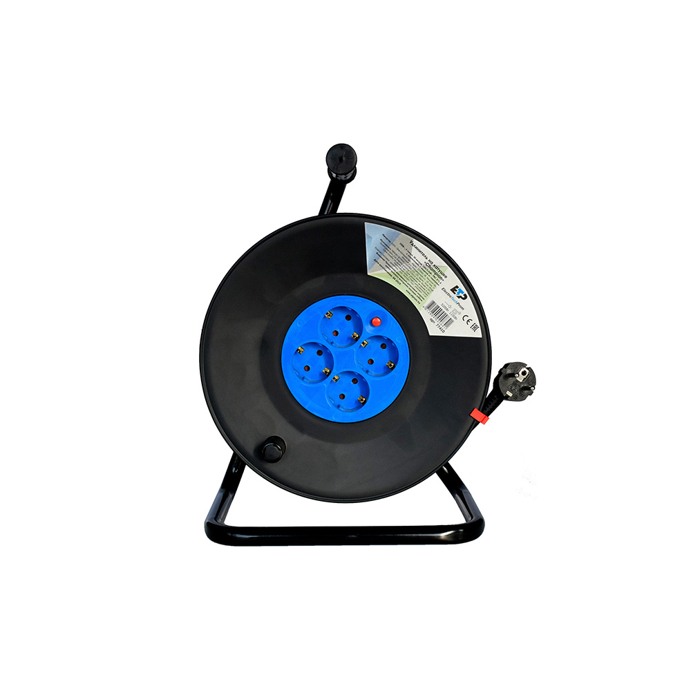 Удлинитель на катушке 4 гнезда 50м, 16А/3,5кW с з/к с предох., ПВС 3х1,5 "CHAMPION" ETP предназначен для подключения электроприборов вдали от стационарной розетки в бытовых условиях эксплуатации. Корпус изготовлен из огнестойкого пластика. Металлическое основание позволяет удобно использовать удлинитель и транспортировать его. На катушке есть предохранитель, который защитит удлинитель от повреждений в результате превышения допустимой нагрузки.