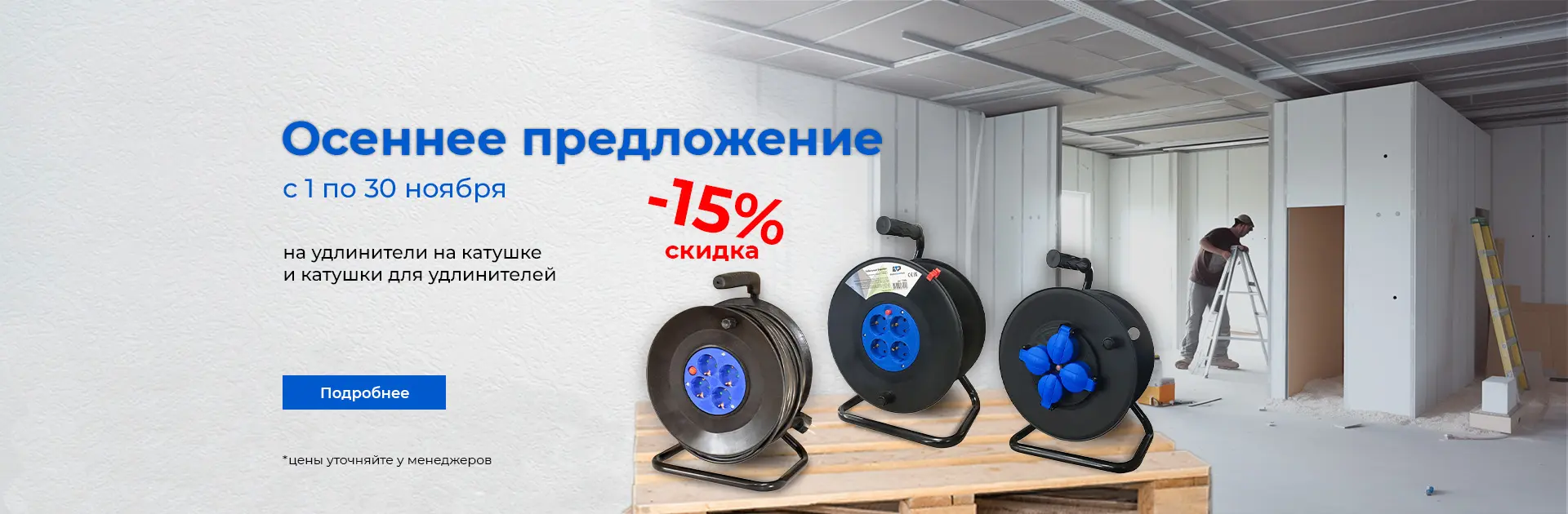 Специальное предложение на катушки для удлинителей и удлинители на катушке ТМ ETP. Скидка 15% на весь ассортимент до конца ноября.